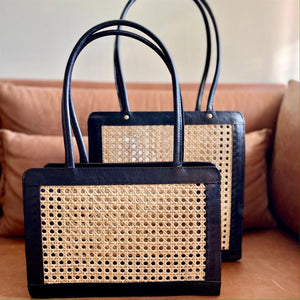 Veske med skinnhank, sort, 30x30 cm  - Leverandør