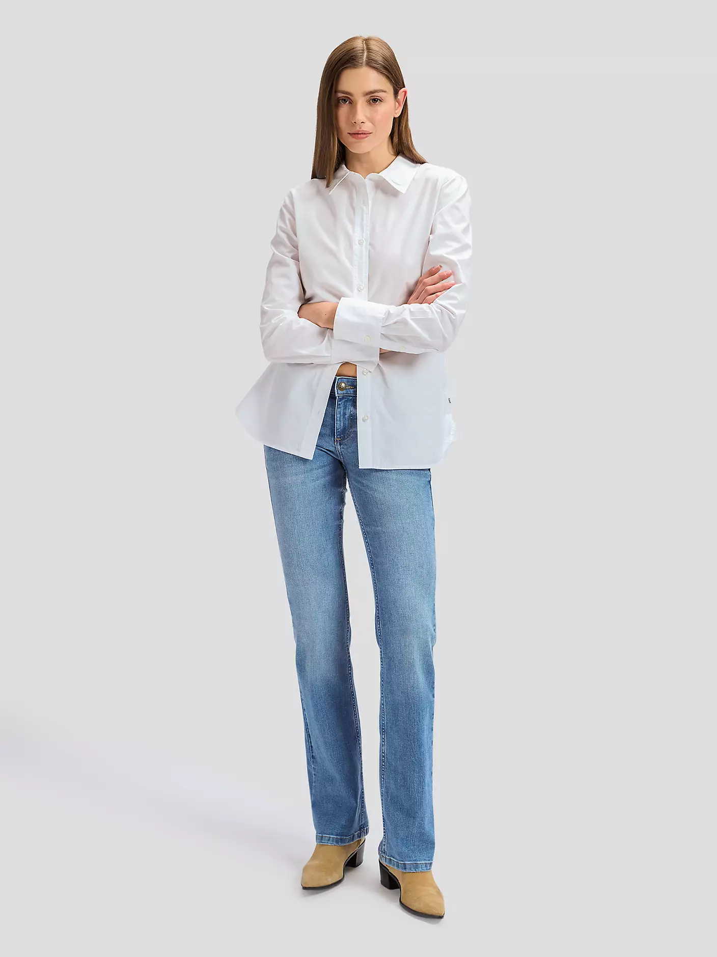 Sofistikert og så flatterende – den lave bootcut-modellen var jeansen som regjerte tidlig på 2000-tallet. Nå tar vi den inn i det 21. århundre med Jessica, med en flatterende passform som klamrer seg til figuren din, og deretter går ut ved ankelen til den ikoniske bootcut-formen. Denne poly-bomullsblandingen resulterer i en komfortabel, lett 10,75 oz denim. Med høy stretch har denne stilen god fleksibilitet og bevegelsesfrihet, slik at du kan bruke den dag etter dag med letthet. Ferdig i vår Rising Sign-vask, er den den perfekte lyseblå denimen. Med markeringer og bretter som fullfører den perfekt uperfekte, vintage-estetikken.