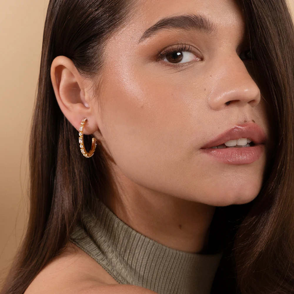 Tidløs eleganse i en elegant, glitrende ring. Disse løkkene er delikat besatt med krystaller og er din favoritt for uanstrengt glamour – enten du skal på kontoret eller på byen.