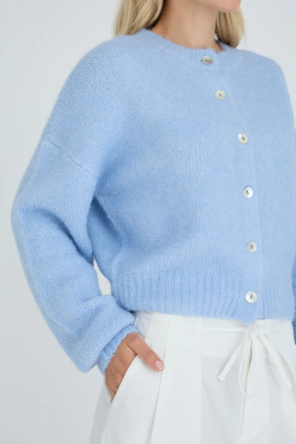 Emilia-buksene er klassiske vide bukser med legg foran. De har vanlig knapp- og glidelåslukking og et avtakbart knytebånd i midjen som en dekorativ detalj.