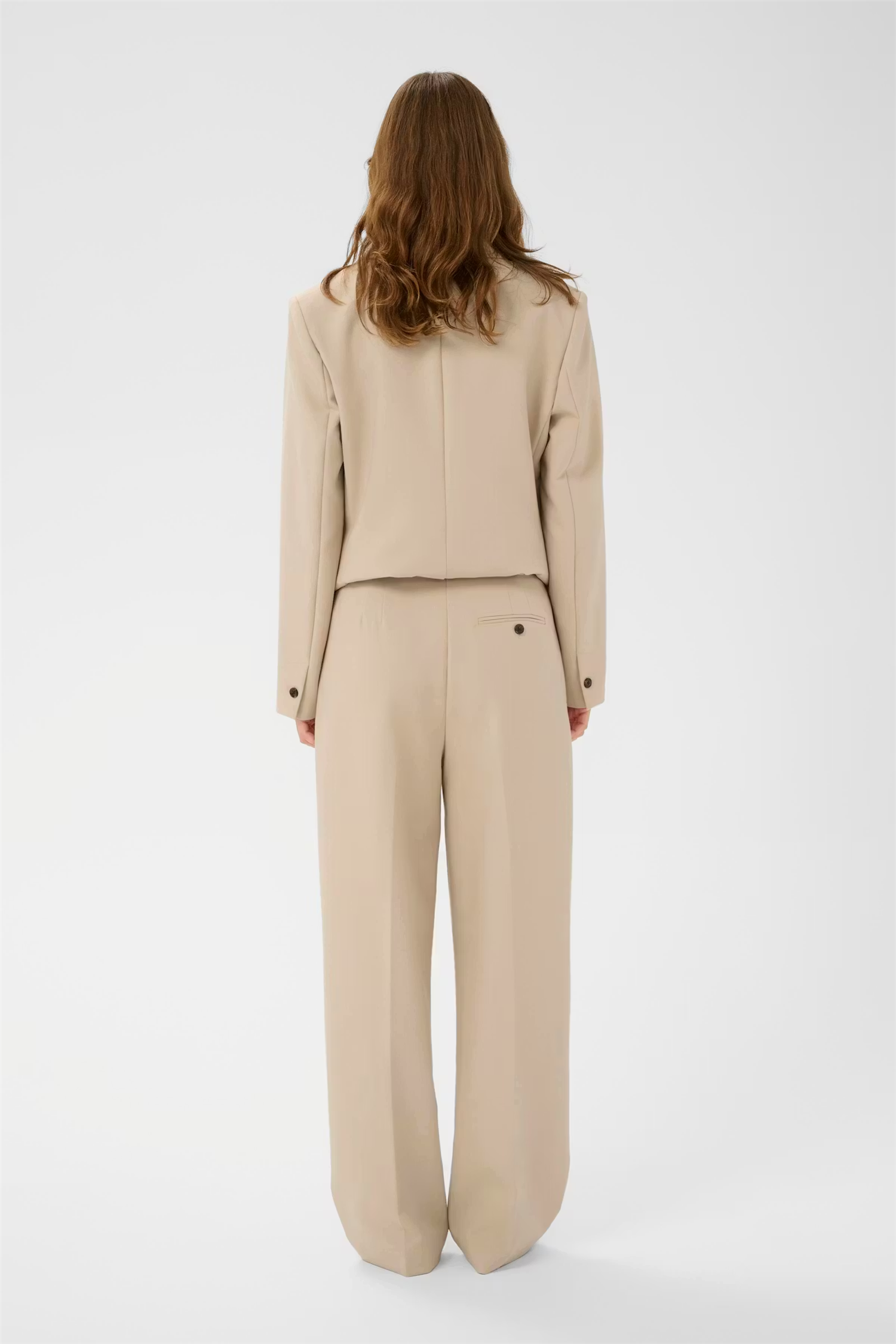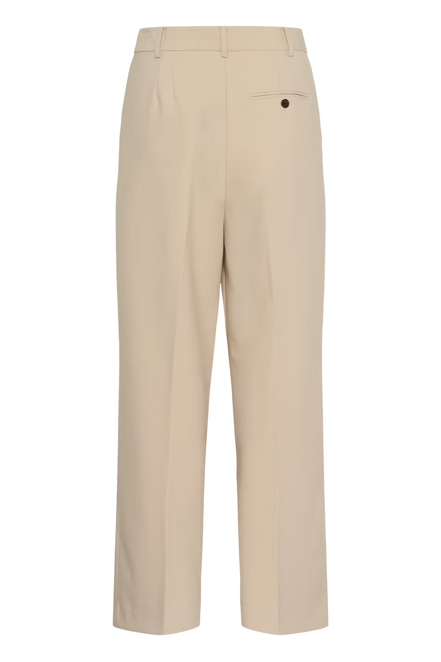 Dressbukse med rett, avslappet passform og mellomhøyt liv. Synlig pressefold, beltehemper og hel lengde skaper en ren silhuett.