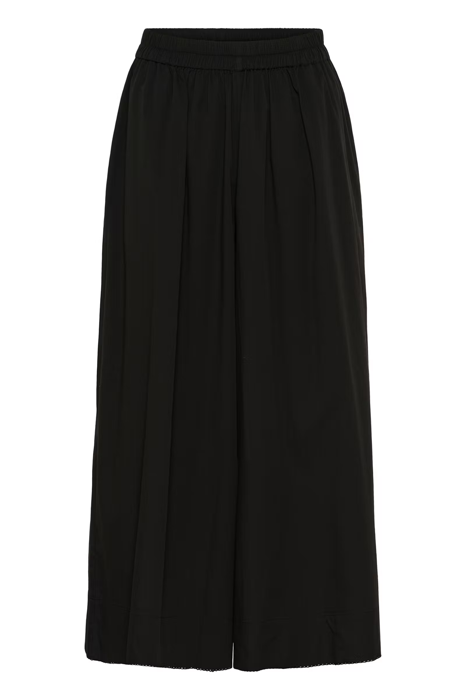 Bukse med ekstra vidde i beina, full lengde og elastisk linning. Myk og glatt overflate med subtil mappe i midjen for en stilren look.