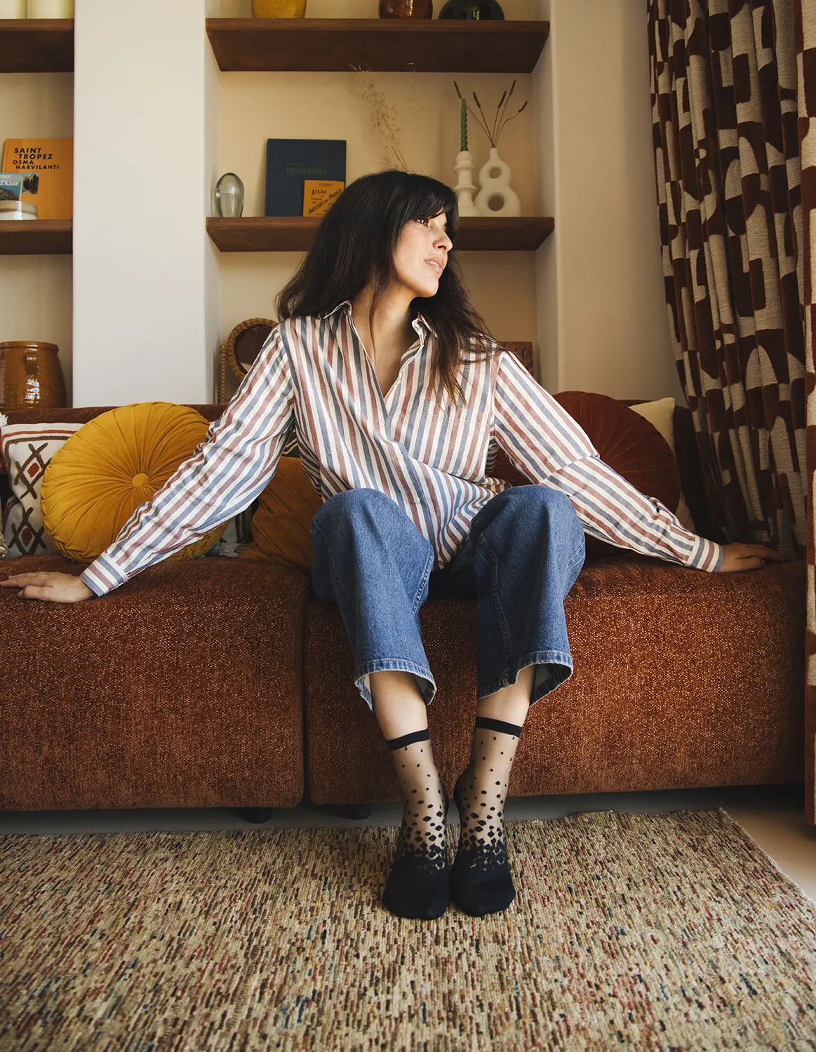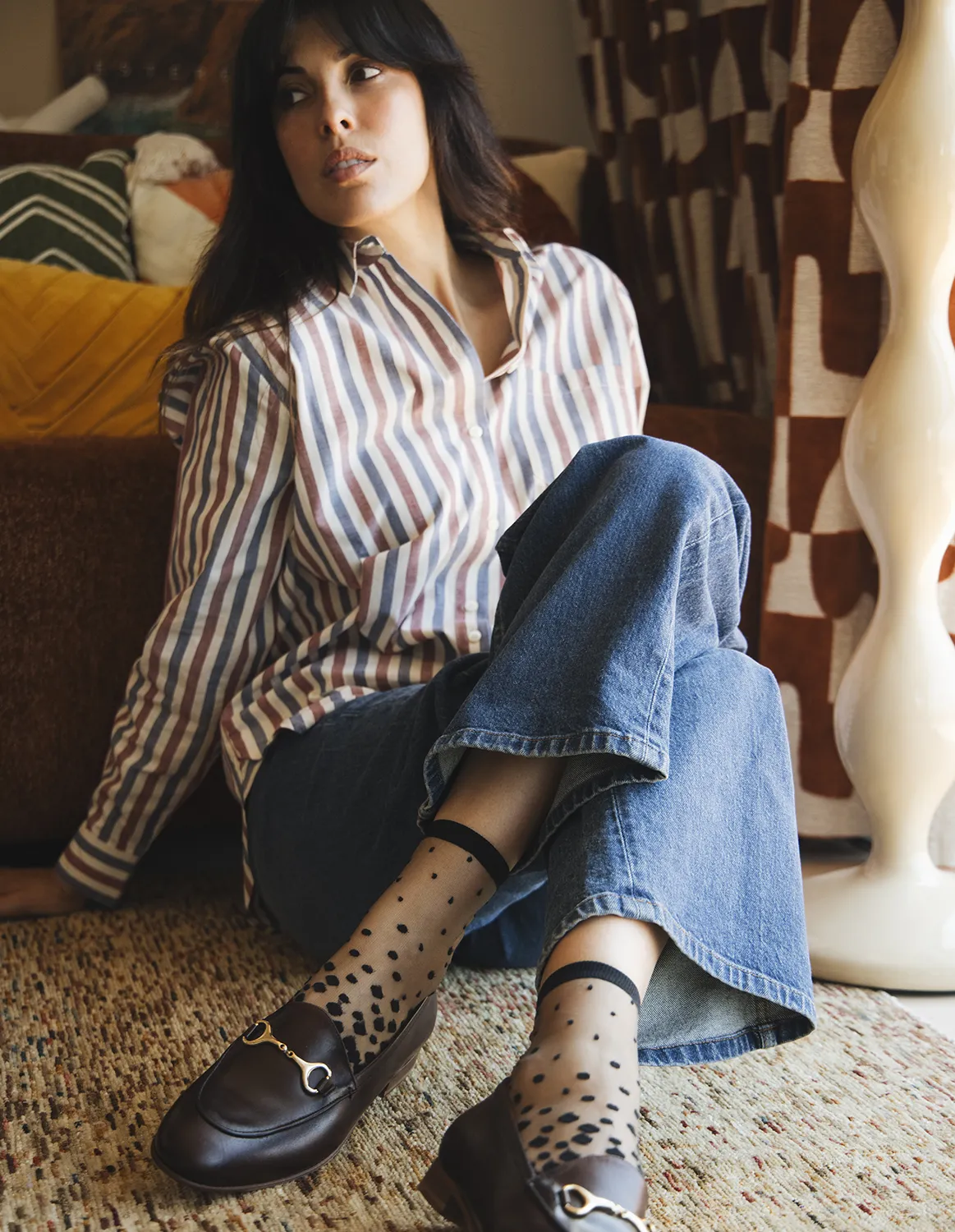Svarte prikker på en gjennomsiktig bakgrunn: en moderne vri på de klassiske plumetis-skoene. Perfekt med derbysko eller loafers! Inspirert av de drivende kirsebærblomstbladene langs Nakameguro-kanalen.