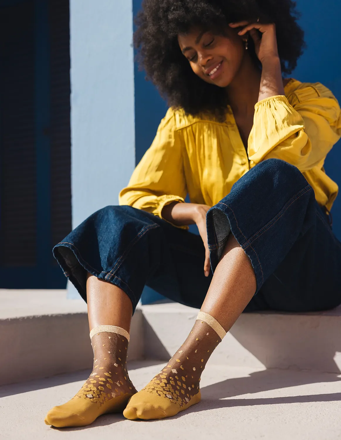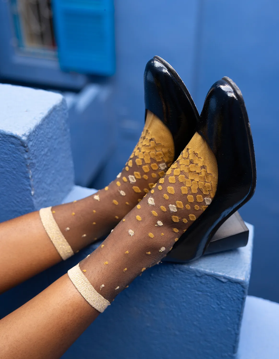 Gjenoppdag Nakameguro, vårt ikoniske par, i en ny sennepsgul farge, solrik og livlig. Pyntet med delikat gullglitter er dette paret inspirert av kirsebærblomstene i Nakameguro-kanalen. Det vil passe perfekt med denimjeans og loafers eller hæler.