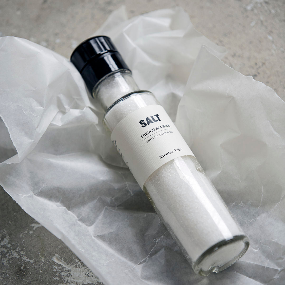 Enjoy the classic salt from Nicolas Vahé. French sea salt is a popular product, especially when combined with Nicolas Vahé’s well-liked pepper mix. These two are the perfect addition to a beautiful dinner table. This salt comes in a handy grinder that makes it easy for you to add a bit of salt to any dish.